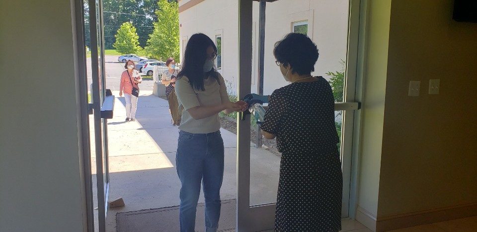 그래도 예배당에서 드려지는 예배를 사모하는 성도님들께서 마스크를 착용하고 예배당에 들어오셔서는 손세정제로 손을 소독하시며 예배를 드렸습니다. 예배 동안에도 마스크를 잊지 않으셨습니다. 그리고 교회에서도 제한된 수의 의자를 거리를 두어 배치하였습니다.