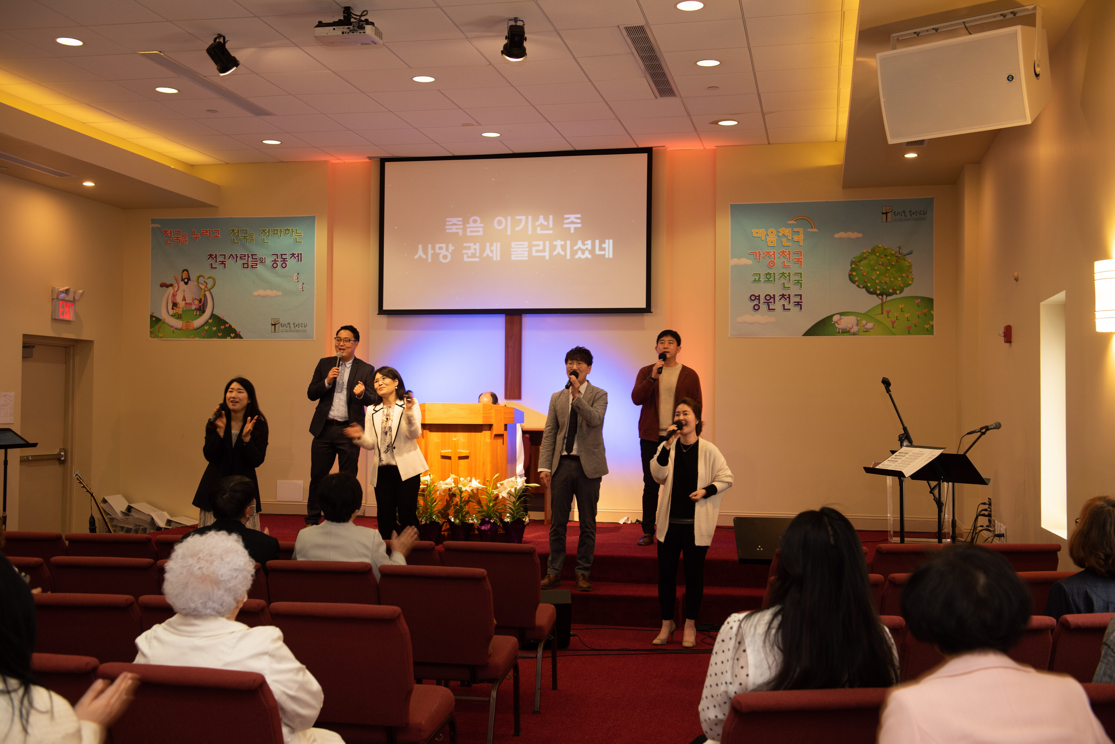 하나님의 축복이 함께 하며 지혜와 키가 자라고 하나님의 귀한 일꾼으로 또 사람들에게는 더욱 사랑스러운 어린이로 성장하기를 함께 기도하겠습니다. 그리고 예배 중간에는 특별 찬양팀의 신나는 부활절 찬양이 함께 했습니다.